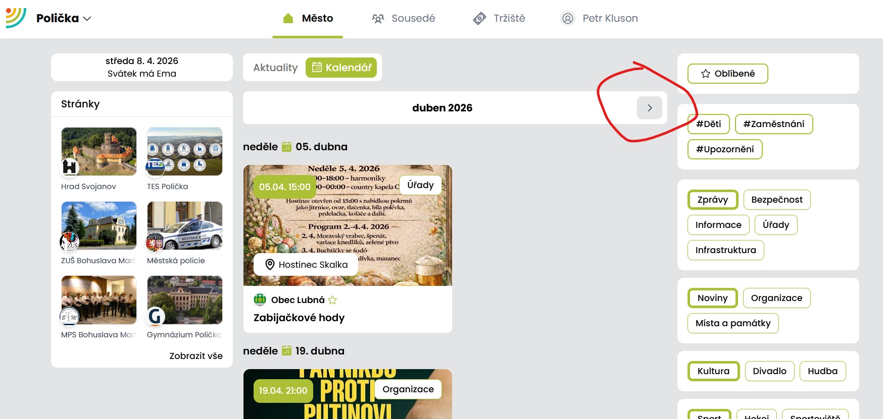 STRÁNKA je základní prvek Sousedské sítě. Prostřednictvím STRÁNKY je možné vkládat obsah v podobě příspěvků nebo událostí.